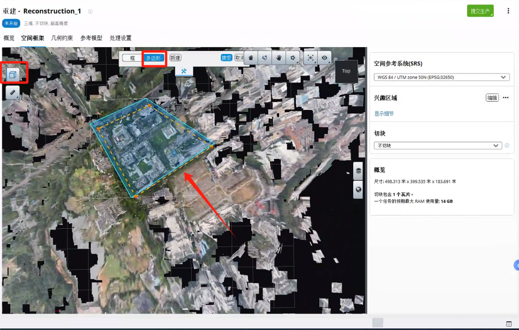进入空间框架模块,修改建模范围和高度,高度必须覆盖当前模型范围