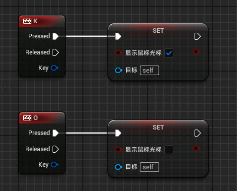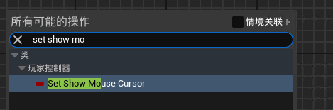 在开发环境中可以使用 shift+F1 进行鼠标交互,但在生产环境下需要通过蓝图唤出鼠标指针,查找下方API节点