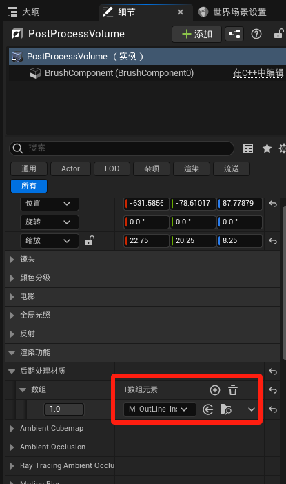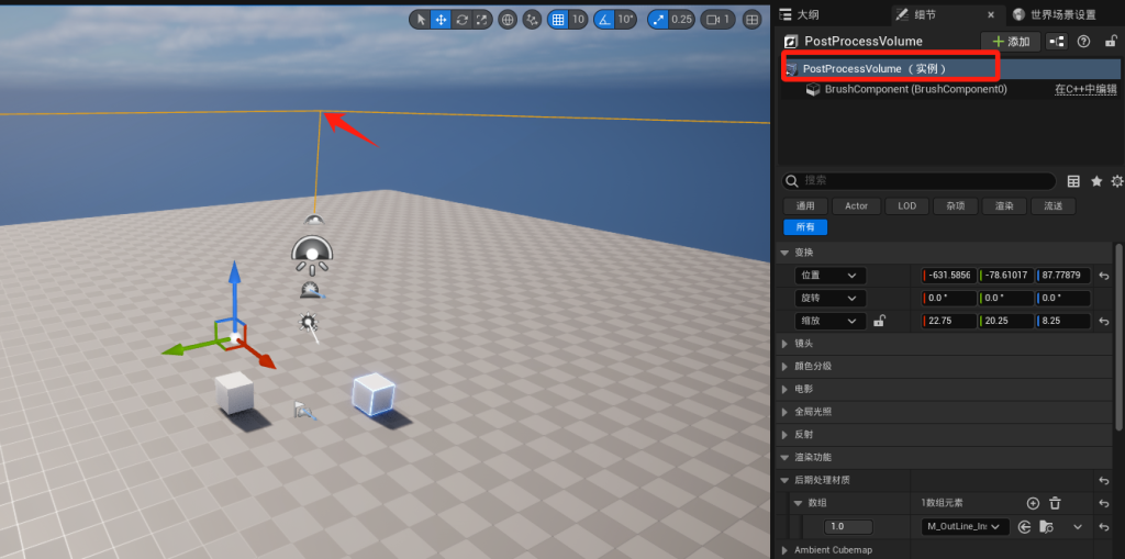 需要用后期处理体积框住高亮的静态网格体