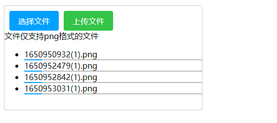 以上代码的实现形式,点击 选择文件 按钮,选择文件后自动上传。