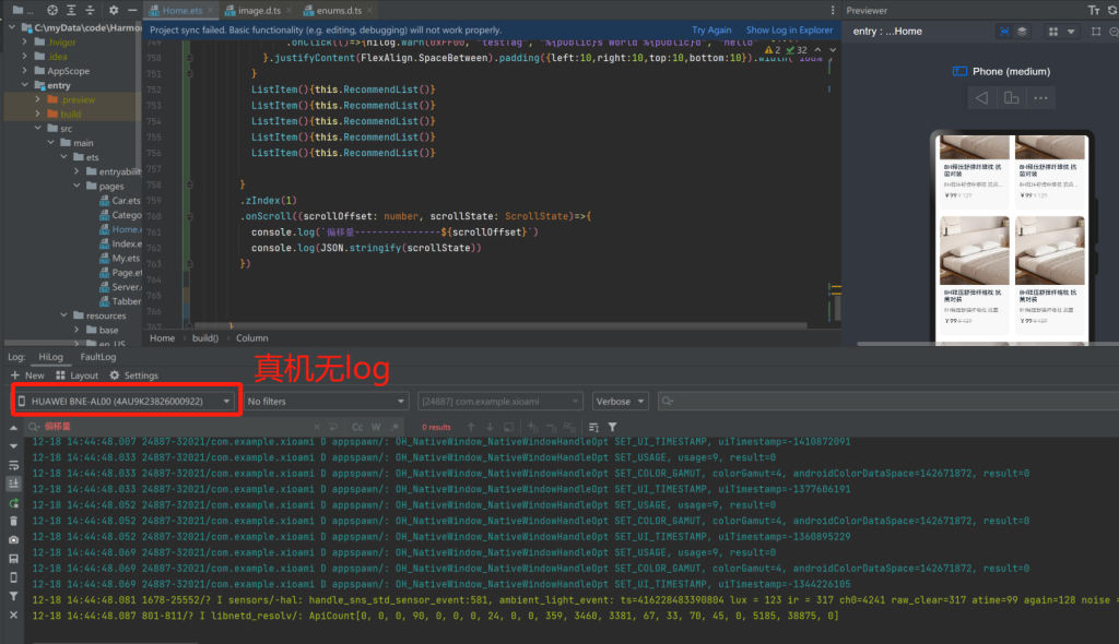 鸿蒙开发在真机调试下无法打印 log 日志, 但在预览模式和虚拟机下可以正常打印, 效果图