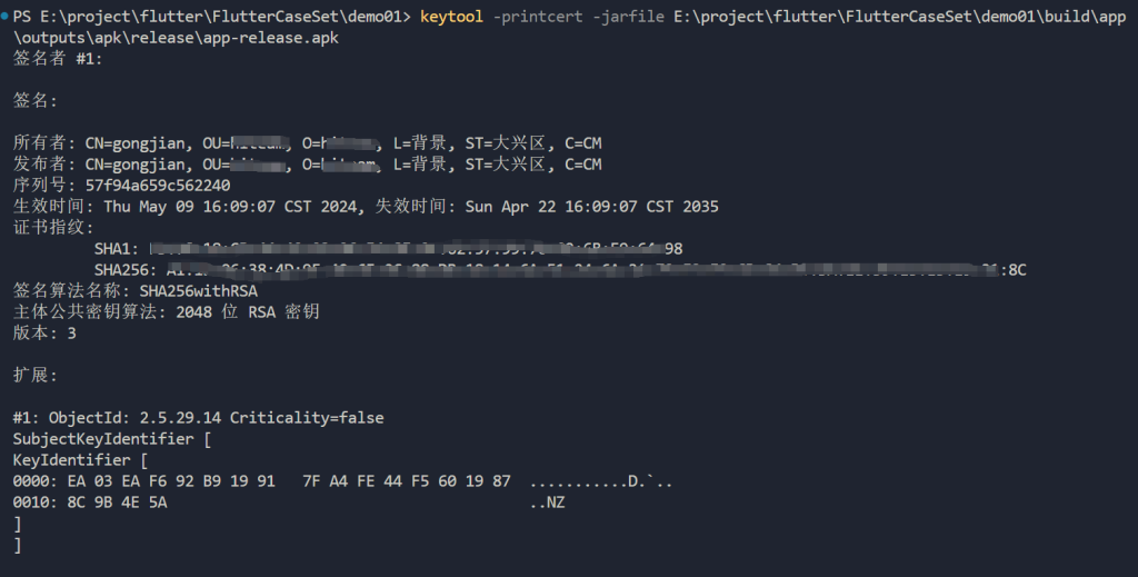 flutter 命令行方式生成签名证书